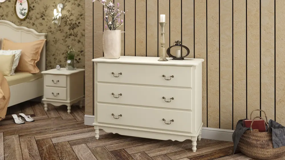 Представляем Вам элегантный комод с 3 ящиками из коллекции «Верден», выполненный в классическом стиле с лёгкими штрихами "Прованса". Фигурные ножки на цокольной планке и классический изгиб, придают изделию из этой серии особый шарм и притягивают взгляд. При изготовлении изделий коллекции «Верден», кроме натурального массива сосны, не применяются никакие другие материалы, наподобие дсп, мдф и других материалов, которые могли бы поставить под сомнение экологичность изделия. Коллекция производится в цвете - укрывистый белый воск, структура древесины едва просматривается. Комод комплектуется 3 выдвижными ящиками, плавное, бесшумное выдвижение и закрывание которых обеспечивается системой скрытых направляющих с доводчиками всемирно известной фирмы Blum (Австрия). Боковины ящиков выполнены из сосны, не покрыты лаком, но качественно отшлифованы. Для ящиков комода используются мебельные ручки фирмы Bozetti Marella (Италия). Комод поставляется в разобранном виде, фурнитура и подробная схема сборки прилагаются в комплекте.
