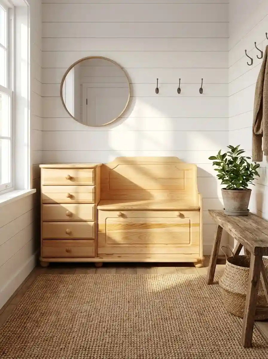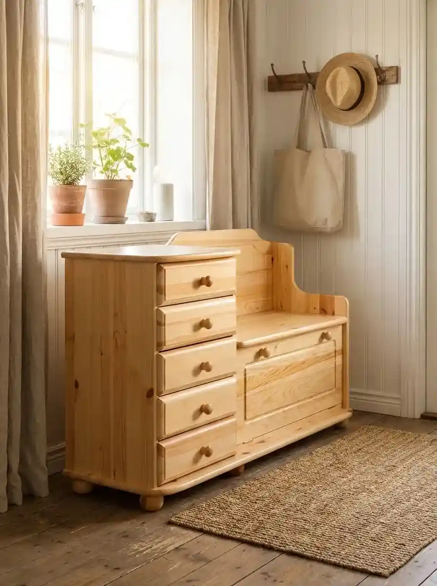 Классический комод из массива сосны + тумба под обувь с откидной крышкой.