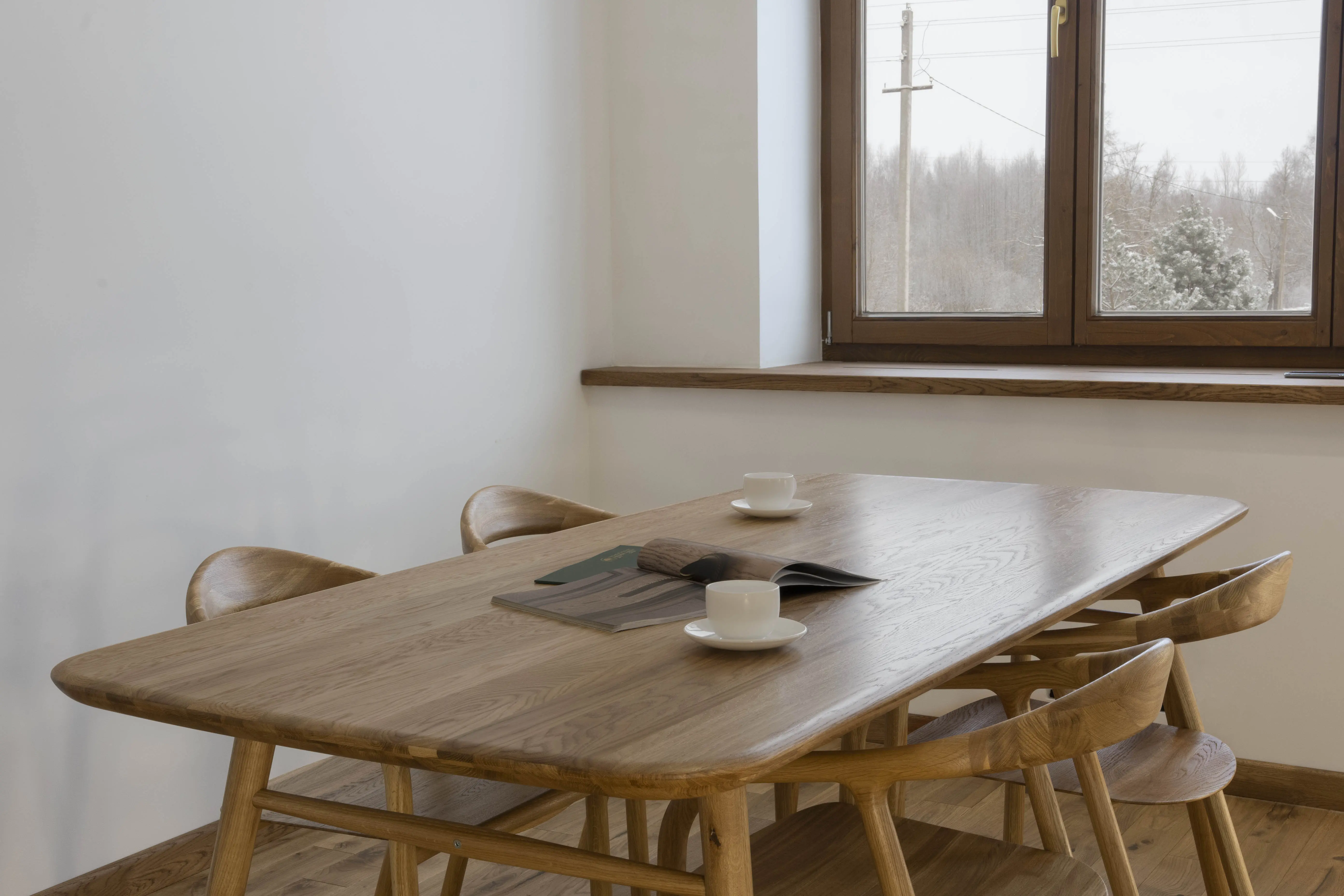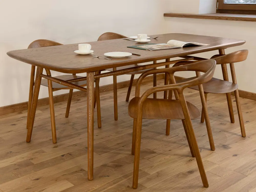 Большой обеденный стол из массива дуба со скругленными углами на 2,0 метра длиной.