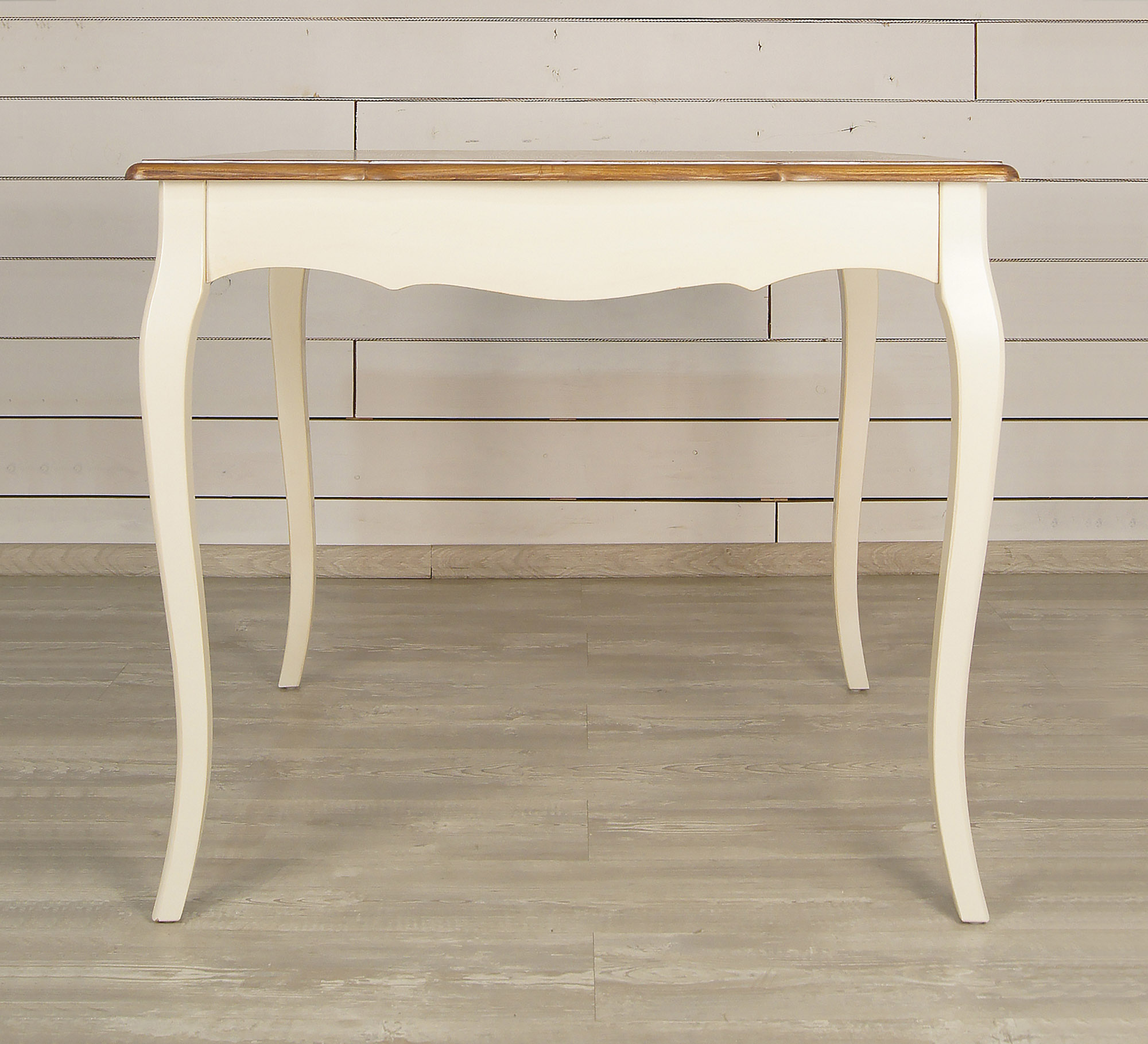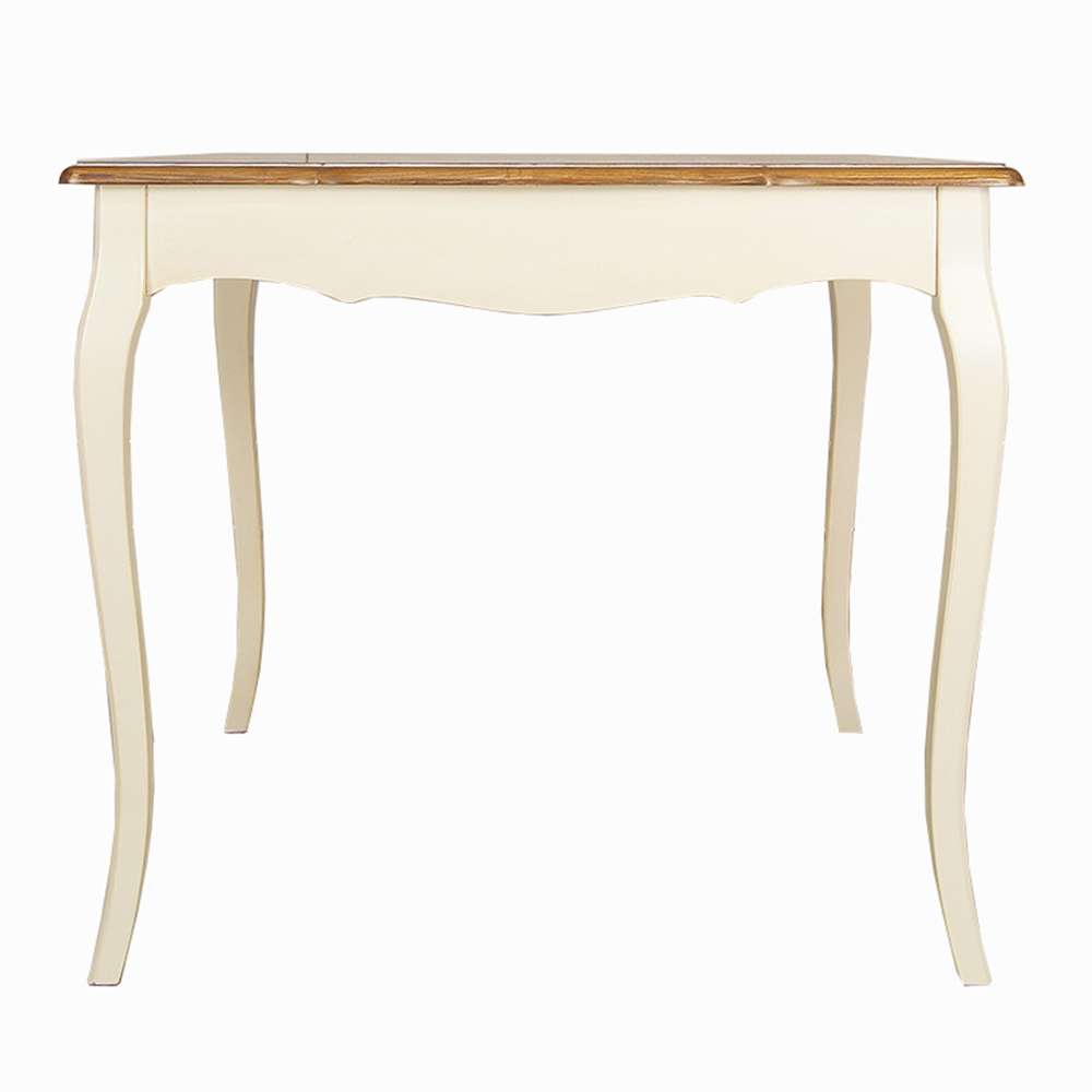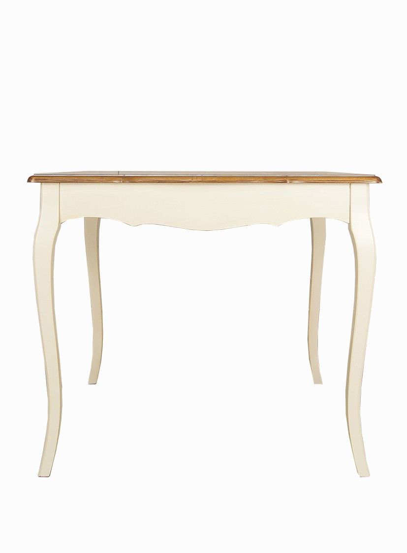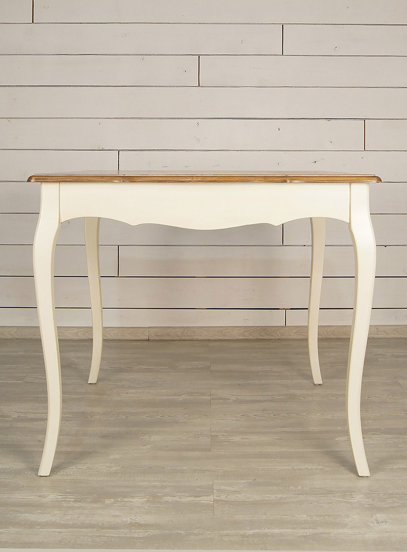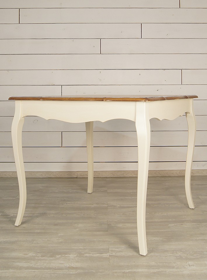 Нежный бежевый цвет, патина (по желанию), гнутые ножки кабриоль и столешница из массива ясеня делают